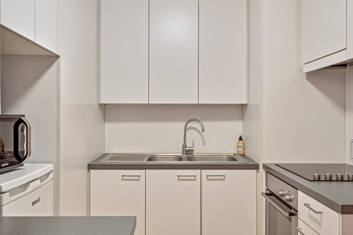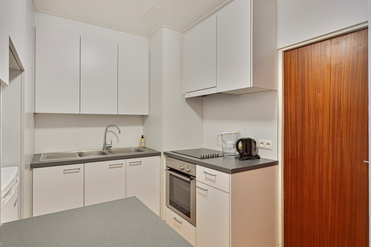 Keuken (Gelijkvloers)6.5 m2 (ingericht met een 2-delige spoelbak, keramische kookplaat, dampkap, oven en een ingebouwde koelkast)