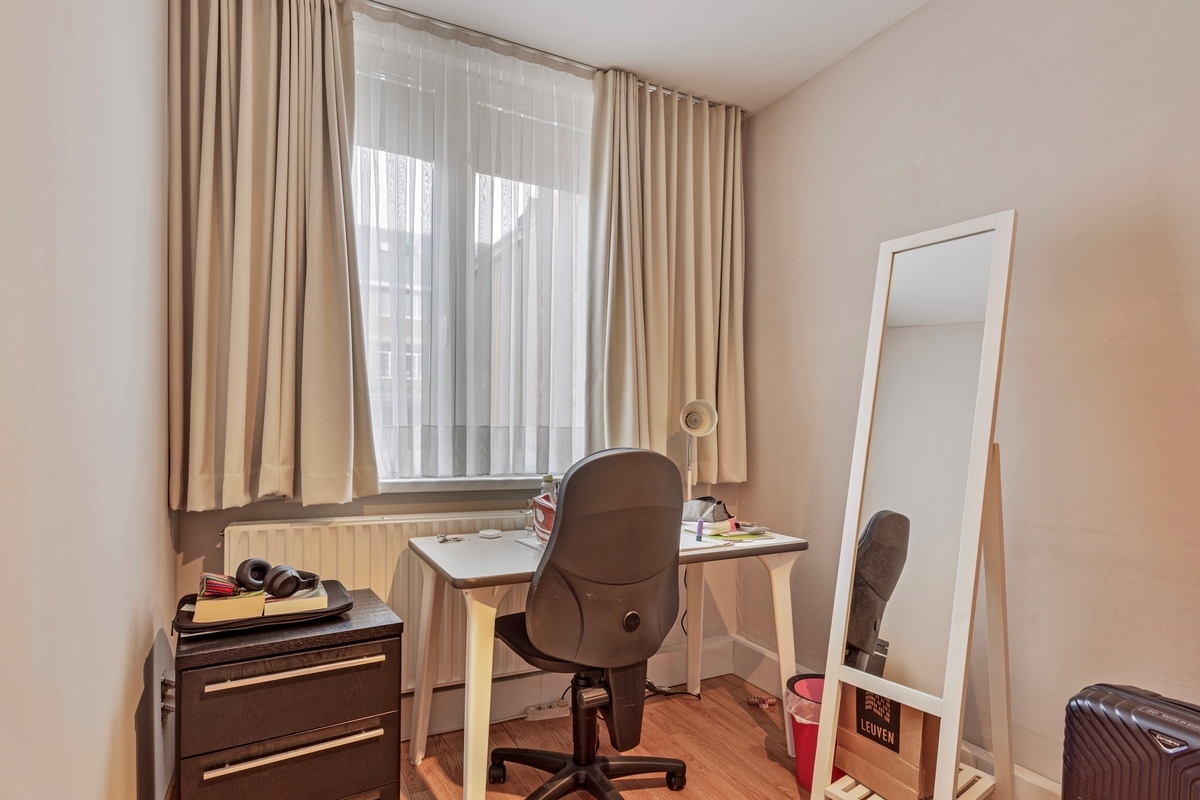 Bent u ook op zoek naar een waardevaste belegging of zoekt u een eigen stek aan te kopen voor uw studerende kinderen of voor uzelf? Dan is dit ruime en lichtrijke appartement op een topligging in Leuven, een ware opportuniteit. Dit appartement met een netto-bewoonbare oppervlakte van 77m² is uitermate centraal doch zeer rustig gelegen in het historisch centrum van Leuven en op een zucht van Gasthuisberg. Dit appartement is vooraan gesitueerd op het gelijkvloers van een welonderhouden en kleinschalige residentie en omvat een inkomhal met bergruimte en gastentoilet, een lichtrijke living met een keuken en een badkamer met uitgerust met een douche, een lavabo en twee ruime slaapkamers. Tevens beschikt dit eigendom over een ruime en praktische achteraan gelegen gemeenschappelijke overdekte fietsenstalling en een grote, individuele kelder. Bovendien bestaat de mogelijkheid om een garagebox in de residentie aan te kopen aan 30.000 Euro. Kortom, dit lichtrijke en uiterst welgelegen appartement met lage maandelijkse vaste kosten is zeker een bezoek waard. Voor snelle beslissers.