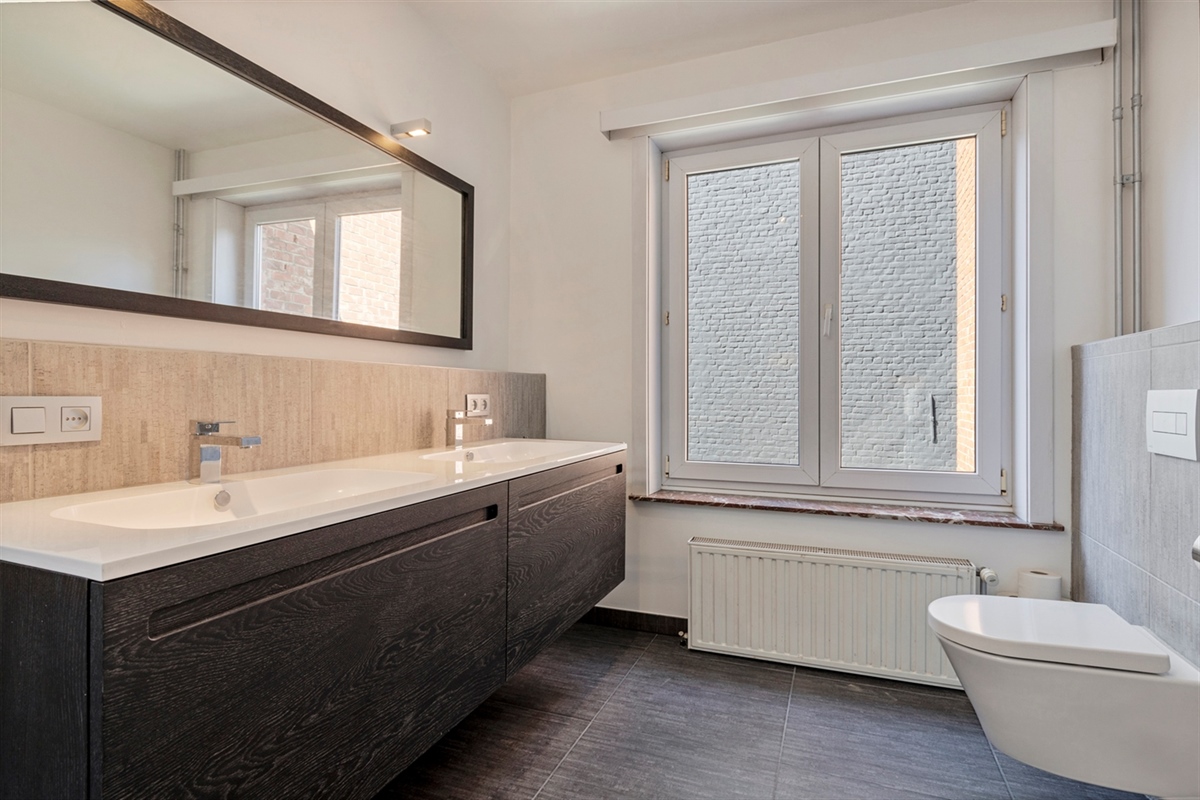 Deze instapklare en in 2014 grotendeels gerenoveerde stadswoning is uiterst centraal gelegen in een autoluw straatje, midden in het historisch centrum van Leuven, op enkele wandelpassen van het stadspark en vlakbij het openbaar vervoer. Deze gezellige woning met een nuttige bewoonbare oppervlakte van 131 m² en omvat op het gelijkvloers een inkomgang, een gastentoilet, een ruime en lichtrijke living met een open ingerichte leefkeuken. Op de eerste verdieping bevinden er zich een traphal, een grote slaapkamer die vooraan gesitueerd is en een prachtige badkamer uitgerust met een inloopdouche, dubbel lavabomeubel en toilet. Verder bevinden er zich op de tweede verdieping nog een tweede slaapkamer die tevens vooraan gesitueerd is en nog een polyvalente ruimte met leidingen voorzien voor het plaatsen van een tweede badkamer. Deze stadswoning beschikt verder nog over 2 functionele kelders en last but not least bestaat de mogelijkheid tot het bouwen van mooi dakterras met veel privacy. Kortom, dit instapklaar eigendom is een absolute aanrader voor wie zoekt naar een gezellige en uiterst centraal doch rustig gelegen woning met veel potentieel. Zeker uw bezoek waard. Een aanrader. Voor snelle beslissers.