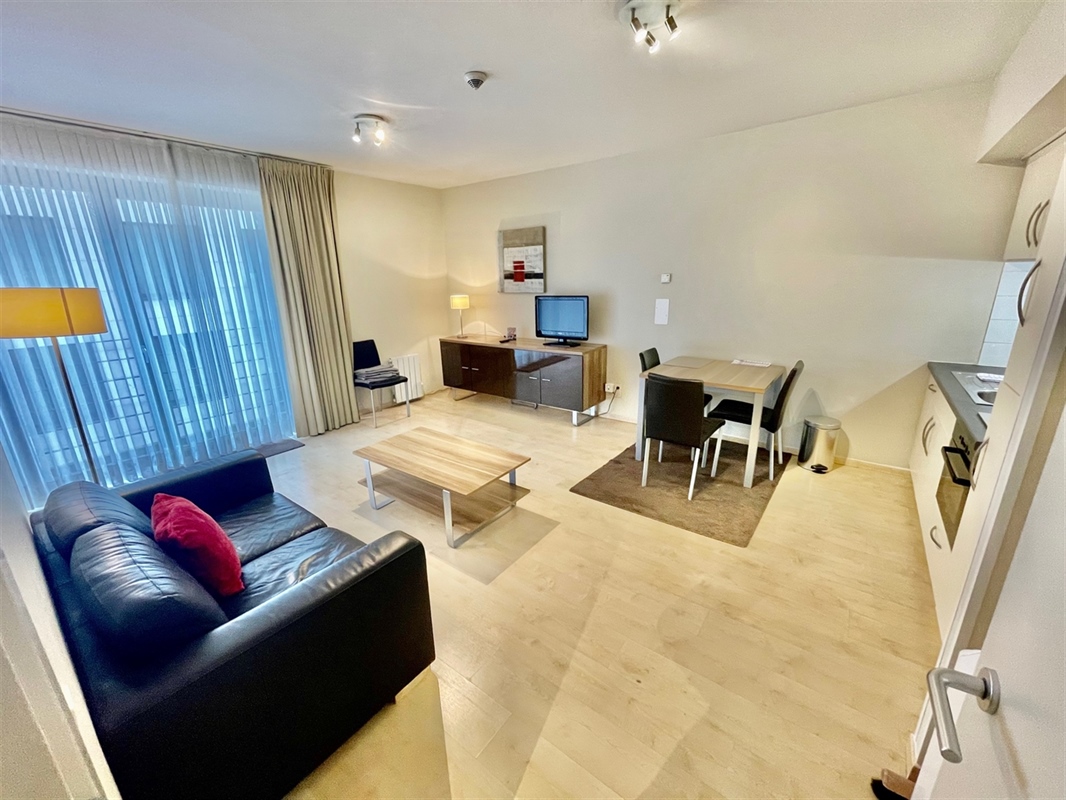 For sale: Gemeubeld 1K-appt op 3de verdiep met groot terras!