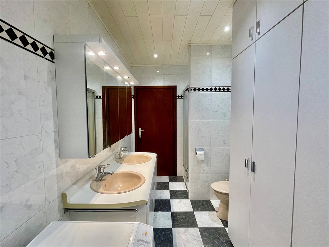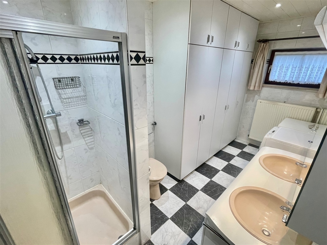 This well-maintained and characterful family home, offering a living area of 169 m² and an impressive façade width of 17 m, was built in 1983 on a corner plot of 537 m². The property is ideally located in a quiet, family-friendly residential neighborhood, within walking distance of the shopping centre, schools and public transport (bus and train). Thanks to its excellent connections to Brussels Airport, the Brussels Ring and the E40/E19 motorways, accessibility is optimal. The ground floor comprises an entrance hall with a guest toilet, a bright living room of 45 m² with a decorative fireplace, a kitchen, a night hall, two full-sized bedrooms, a bathroom fitted with a shower, a second toilet and a double washbasin unit, as well as a large integrated garage for two cars with an automatic sectional garage door. A fixed attic ladder in the garage provides access to the first floor, where there is currently a storage attic of approximately 64 m² with significant conversion potential. This space can be fully adapted to create additional bedrooms, a second bathroom and/or a multifunctional room. Available upon deed transfer. Contact Frederik for more information or a non-binding visit: 📞 +32 498 476 221 / ✉️ frederik@immo-time.be