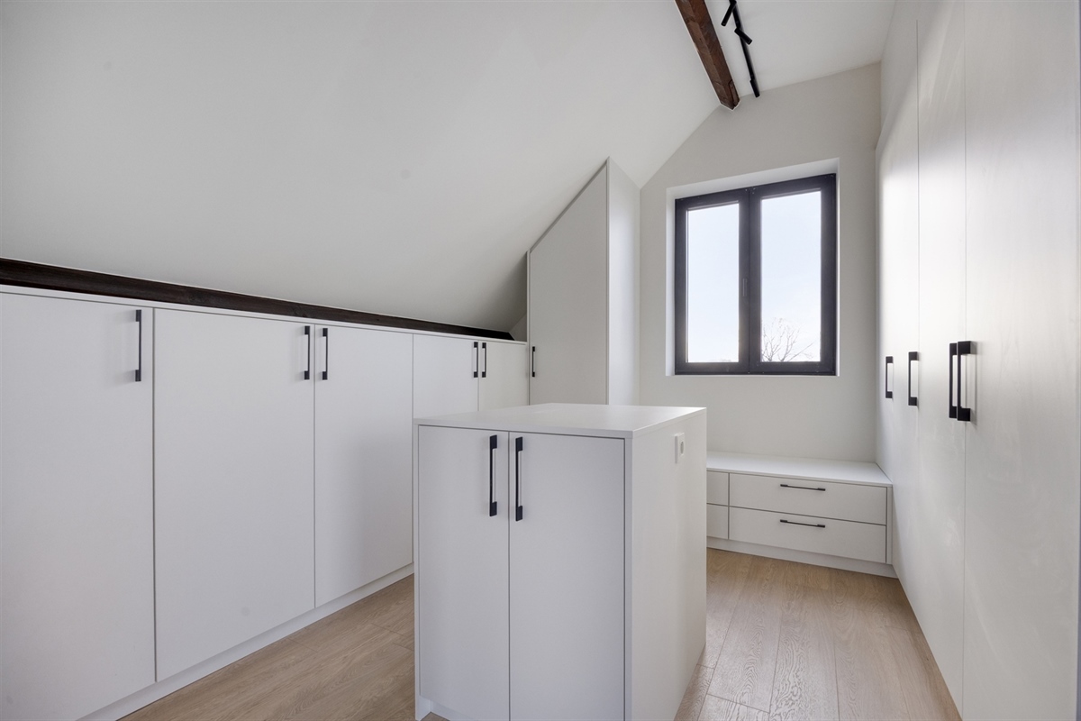 OPEN HUIS Zat. 31/1. Deze energiezuinige en volledig gerenoveerde villa is vrijblijvend te bezichtigen op zaterdag 31 januari tussen 11u00 en 12u00. U bent van harte welkom! Deze energiezuinige en volledig gerenoveerde villa is gelegen in een rustige residentiële omgeving op een boogscheut van Leuven. De kwalitatief afgewerkte woonst omvat op het gelijkvloers een inkomhal met gastentoilet en vestiaire, een ruime en lichtrijke leefruimte met zicht op de tuin, een volledig ingerichte keuken en een ruime kelderverdieping. De eerste verdieping omvat drie volwaardige slaapkamers, telkens voorzien van ingebouwde kasten, en een badkamer met douche. De tweede verdieping werd ingericht als masterverdieping en omvat een ruime slaapkamer met prachtig uitzicht over het weidelandschap, een dressing en een badkamer met inloopdouche. In de volledig aangelegde tuin met terras geniet men in alle rust van het groene, omliggende landschap. De woning werd gerealiseerd in een moderne, tijdloze bouwstijl en afgewerkt met hoogwaardige materialen. Ze is voorzien van alle hedendaags wooncomfort waaronder vloerverwarming, warmtepomp, zonnepanelen, ventilatiesysteem, airco en diverse andere energiebesparende voorzieningen. Dankzij het E-peil 30 en het EPC-label A behoort deze woning tot de zeer energiezuinige categorie. Extra troeven zijn de onderhoudsvriendelijke inrichting, het doordachte ruimtegebruik en de vlotte verbinding naar winkels, scholen en Leuven. De woning is volledig instapklaar en onmiddellijk beschikbaar. Onder bepaalde voorwaarden komt het pand in aanmerking voor het verlaagde tarief van 2% registratierechten. Kortom, een instapklare en energiezuinige villa voor wie tijdloos wil wonen in een groene en rustige omgeving, dicht bij Leuven centrum.