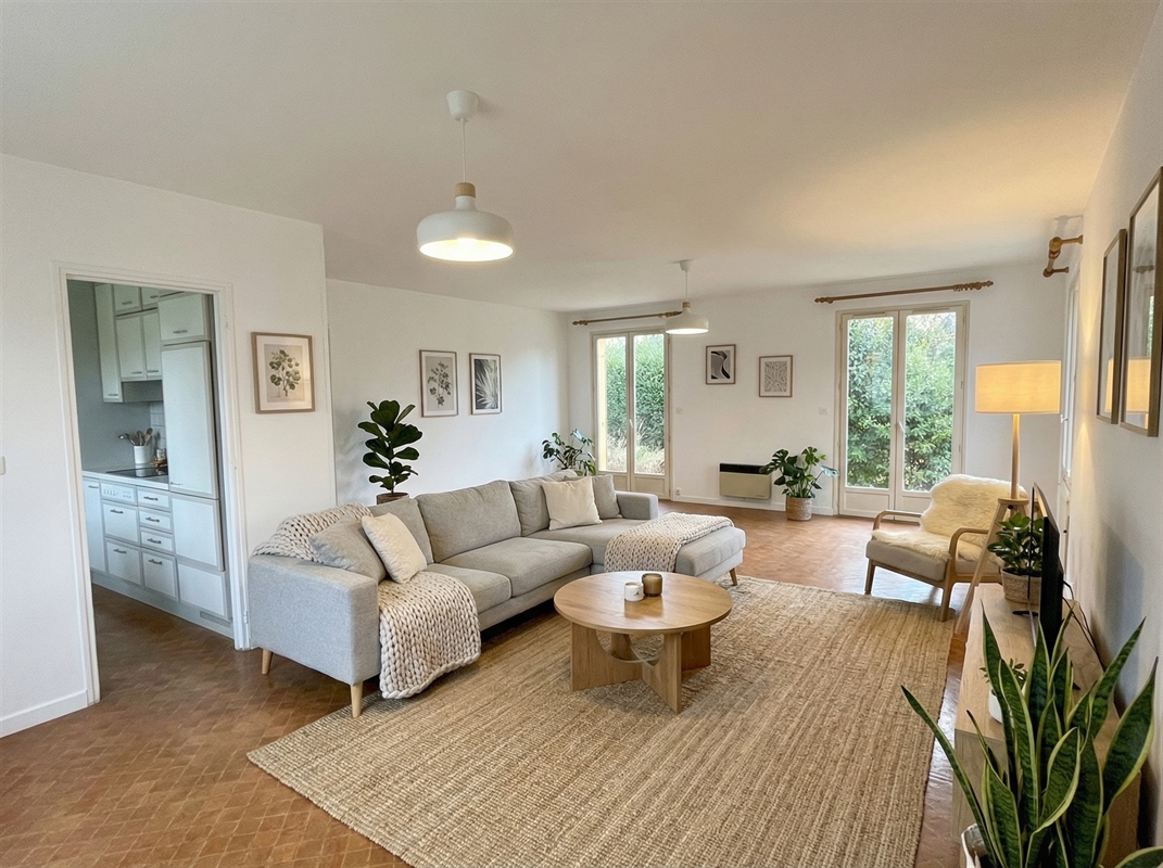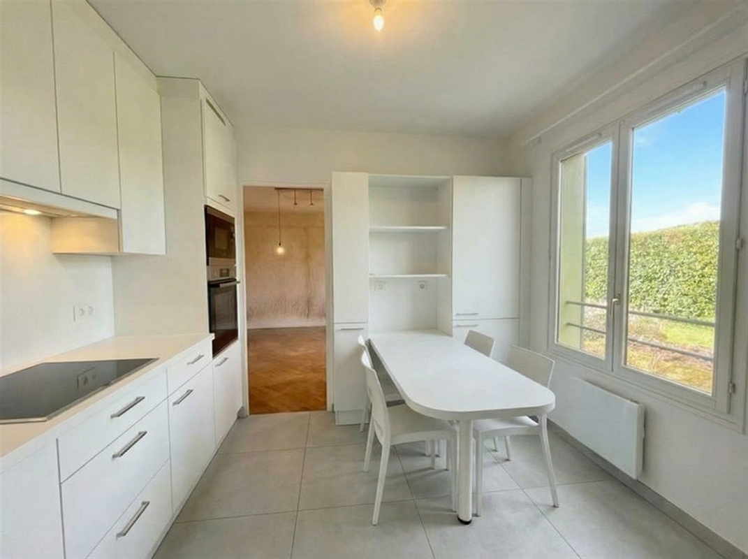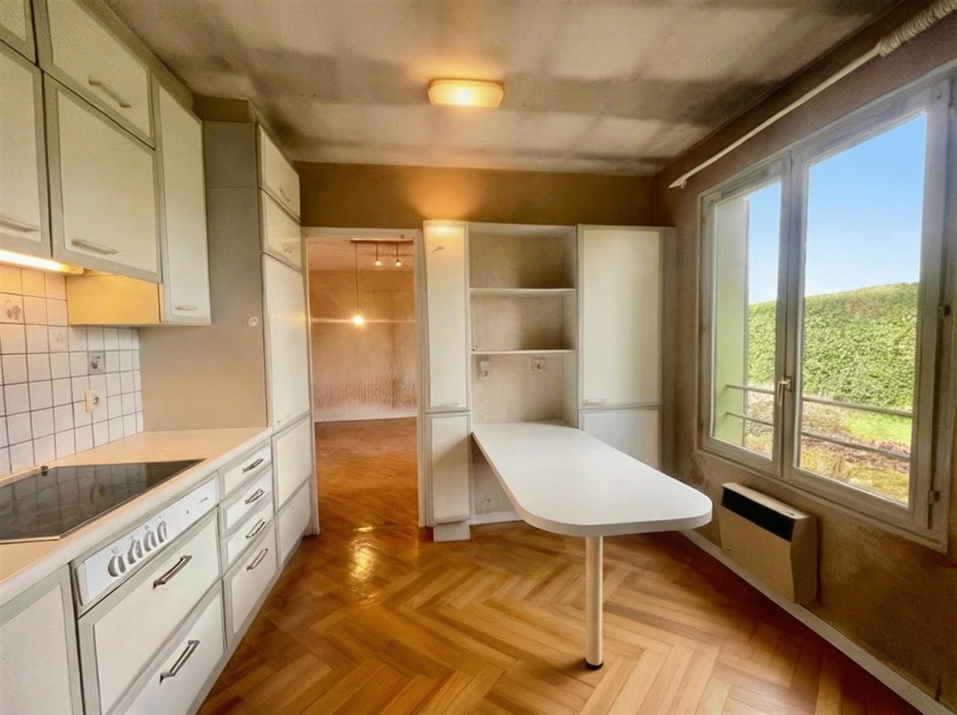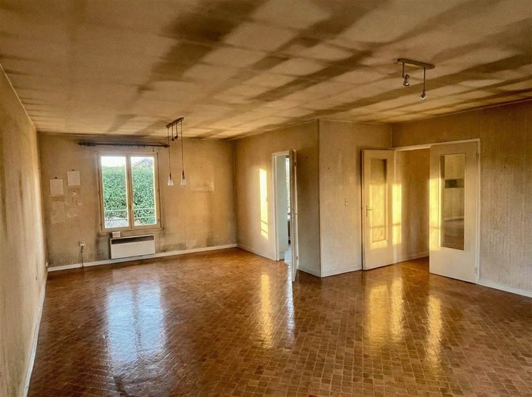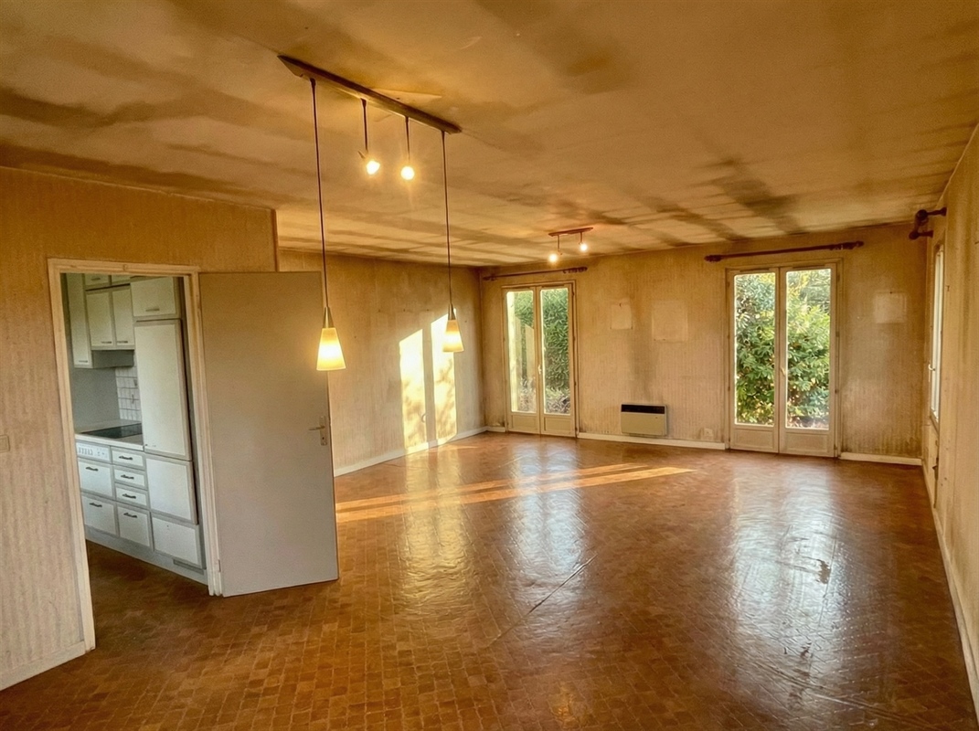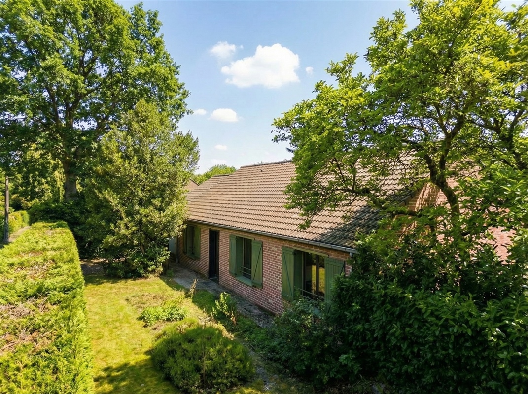 This characterful single-family bungalow (prefabricated), in need of renovation, offers a built area of 160 m² and an impressive façade width of no less than 17.50 meter. It was built in 1979 on a 600 m² plot. The property is quietly located in a child-friendly and highly desirable residential neighbourhood in Nossegem. Thanks to its excellent connections to Brussels Airport, the Brussels Ring and the E40/E19 motorways, it enjoys outstanding accessibility (Mobiscore 8.2), close to supermarkets, shops, schools and public transport (bus and train). The bungalow comprises a spacious entrance hall with cloakroom and guest toilet, a bright 39 m² living room, a separate kitchen, three bedrooms (two with built-in wardrobes), a bathroom with bathtub and washbasin, and a large integrated garage with additional storage space. The perfectly south-facing garden is a major asset. Additional features include decorative shutters and a rainwater tank. The individual electric heating system offers excellent potential for an energy-efficient renovation, for example with solar panels and a heat pump. With the necessary renovation works, this property can become a true gem. Available upon deed transfer. Contact Frederik for more information or to arrange a visit: +32 498 476 221 / frederik@immo-time.be