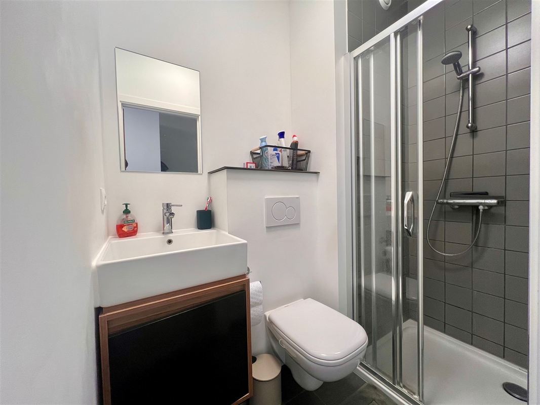 Are you also looking for a safe and profitable investment with a view to capital gains, or do you want to buy your own place for your students for the next academic year? Then this ready-to-use and well-maintained, furnished student room with private bathroom is a real opportunity! This trendy student room is located on the third floor in the northwest wing of the perfectly maintained residence "De Flint", built in 2017. A few walking steps from several faculties, libraries and stores, this student room is in a prime location in Leuven. This energy-efficient unit has a net living area of 15 m² and features a nice living and sleeping area with lots of light and built-in furniture, as well as a separate bathroom, equipped with a sink unit, a shower and a toilet. There is also a communal, equipped kitchen, as well as several outdoor and leisure areas. Last but not least, this student room has a private bicycle parking space. In short, this furnished student room is extremely suitable for parents who wish to purchase something in time for the next academic year, as well as for those who are looking for a value-resistant real estate investment with upward potential. Definitely worth your attention!