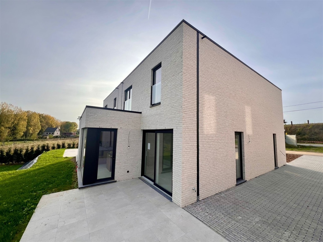 Situated on a nature reserve, near the village center of rural Korbeek-Dijle and with a perfect connection to both Leuven and Brussels and other connecting roads, we are honored to offer for sale this modern and timeless new construction project. This contemporary and energy efficient new construction project has been realized by a renowned construction company and consists of 6 semi-detached houses and 1 open house. This newly built house with a frontage width of 9 m is situated on a plot of 287 m² and has a living area of 165 m². In a modern and timeless architectural style, this house is finished to a high standard and equipped with all modern living comforts, being underfloor heating throughout, heat pump, solar panels and so much more. This energy efficient property comprises on the ground floor an entrance hall, a guest toilet, a practical storage room, a spacious living room with adjacent dining area with open kitchen which provides access to the garden with terrace of 19 m² where it is lovely to relax. The second floor comprises a bathroom, a separate toilet, a technical storage room and 3 bedrooms. In short, a real opportunity for people who want to live energy efficiently, timelessly, luxuriously and comfortably surrounded by the peace and greenery of the Dyle valley. A unique opportunity!
