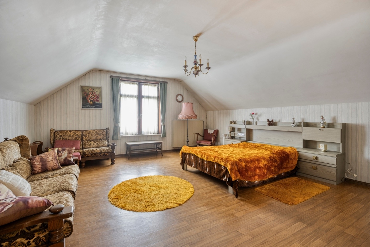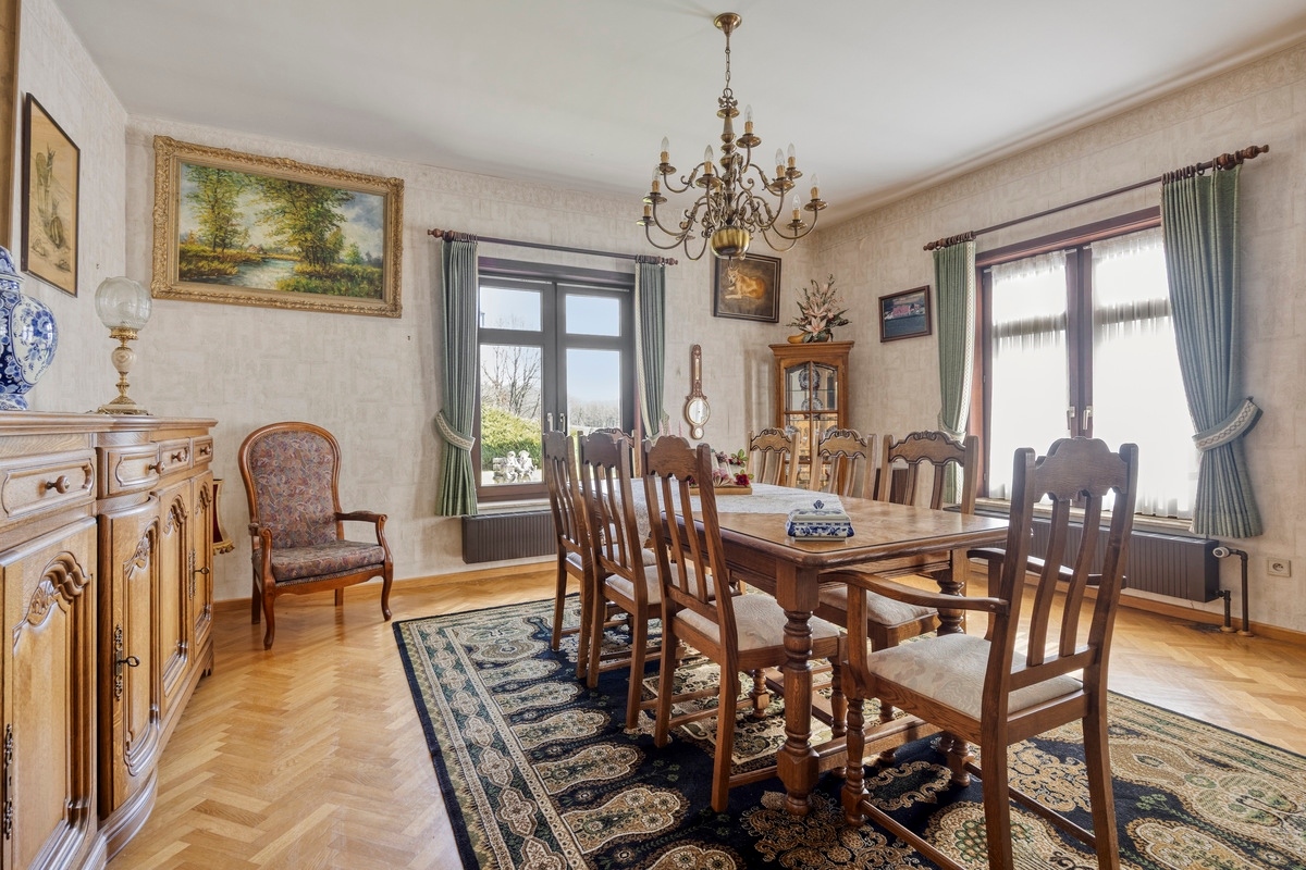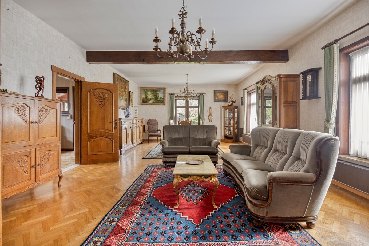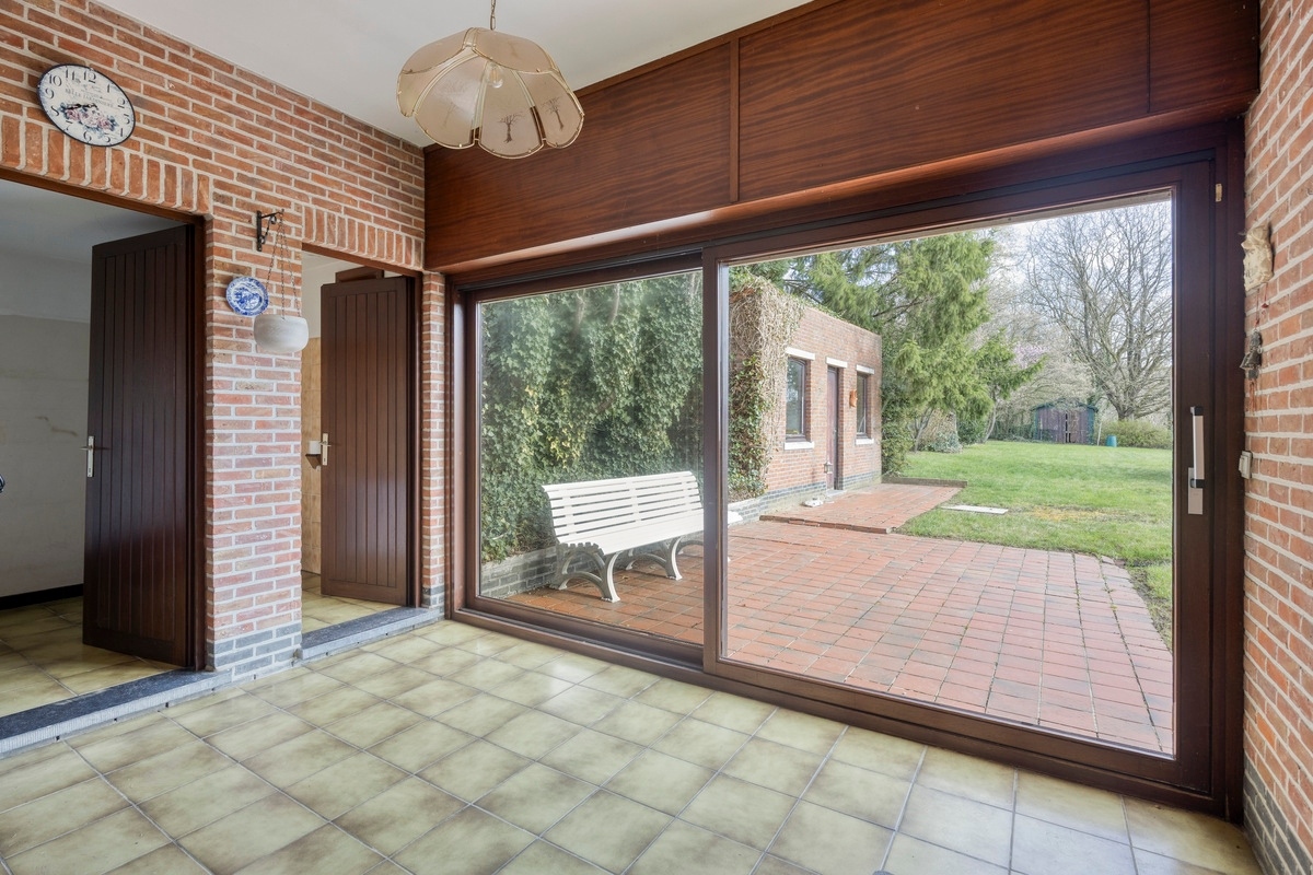 Located one swing from the Winge Golf and Country Club, near the Golden Crossroads and all major arterial roads, we are pleased to offer for sale this to-be-renovated home with safeguarded and unique views. This solid property in a green environment is situated on a perfectly oriented plot of 1805 m² and has a living area of no less than 284 m². The ground floor comprises a spacious and inviting entrance hall with checkroom, a guest toilet, a spacious living room, a bright kitchen and a veranda with separate toilet overlooking the beautiful garden. Bedroom 1 is also on the ground floor as well as the bathroom and the indoor garage. On the second floor you find bedroom 2 and an attic with great potential which could be converted into an additional bedroom. Last but not least, there are also functional cellars. The perfectly oriented garden with unobstructed views offers a perfect vacation feeling in your own country. Provided the necessary renovation work is done, this house can be transformed into a cozy, contemporary home. In short, an absolute outdoor opportunity for those who value privacy and space. For quick decision makers.
