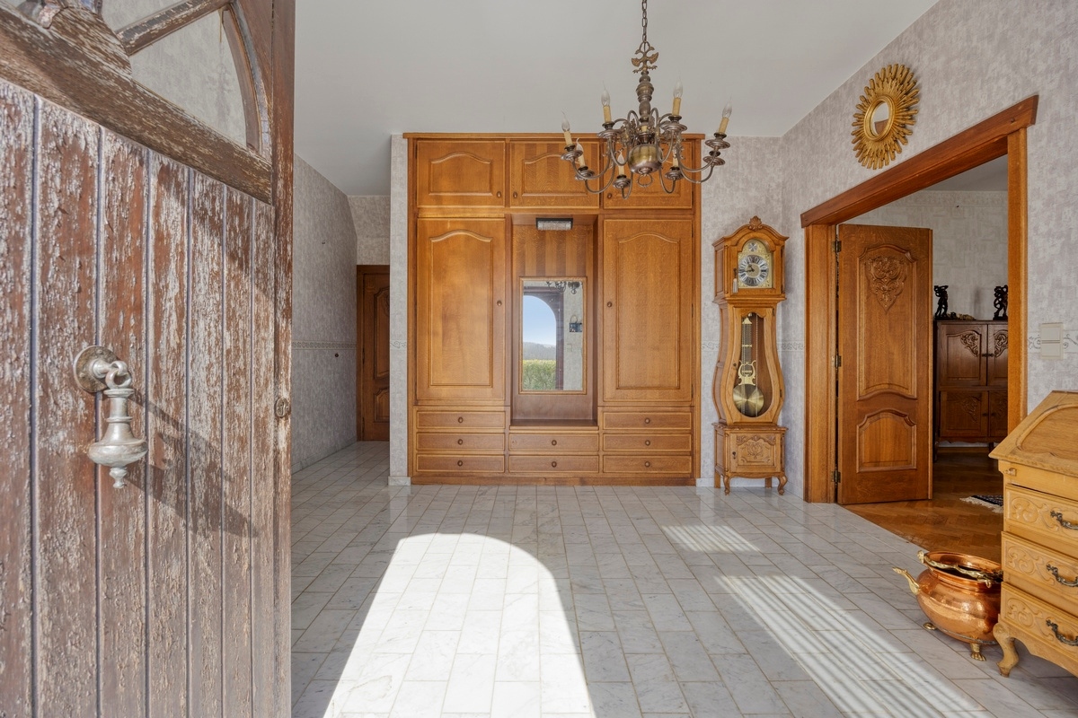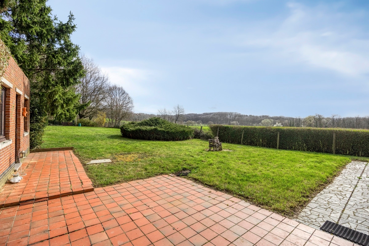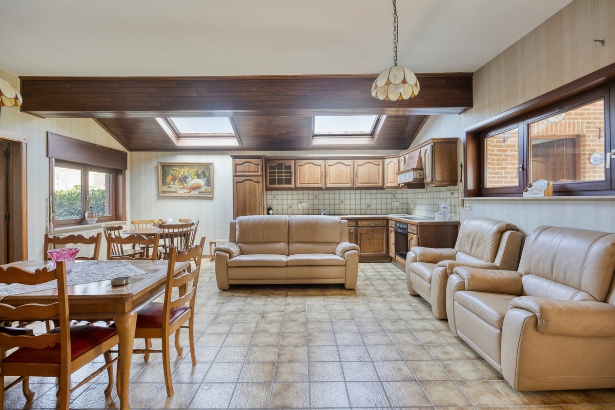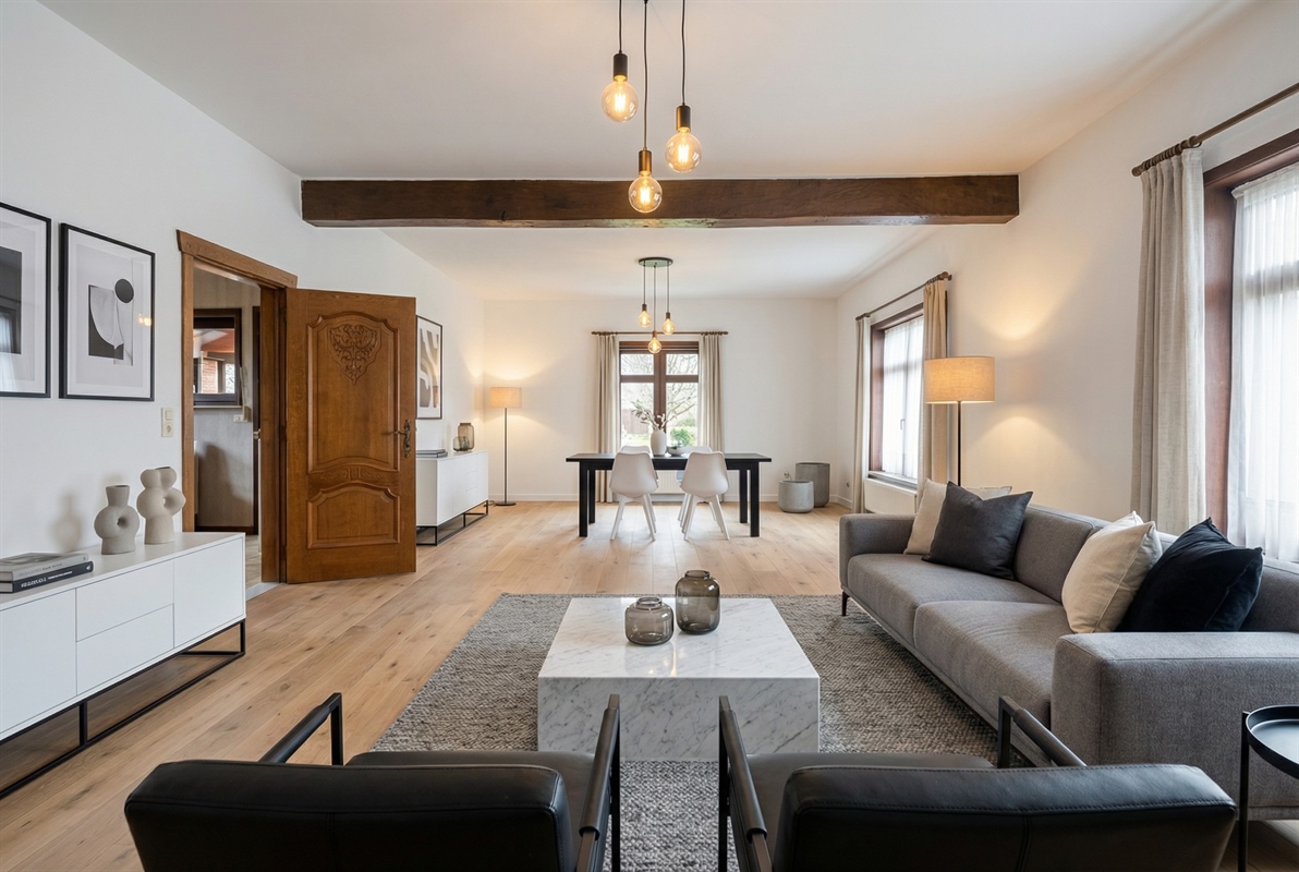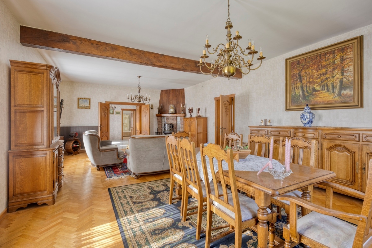 Located one swing from the Winge Golf and Country Club, near the Golden Crossroads and all major arterial roads, we are pleased to offer for sale this to-be-renovated home with safeguarded and unique views. This solid property in a green environment is situated on a perfectly oriented plot of 1805 m² and has a living area of no less than 284 m². The ground floor comprises a spacious and inviting entrance hall with checkroom, a guest toilet, a spacious living room, a bright kitchen and a veranda with separate toilet overlooking the beautiful garden. Bedroom 1 is also on the ground floor as well as the bathroom and the indoor garage. On the second floor you find bedroom 2 and an attic with great potential which could be converted into an additional bedroom. Last but not least, there are also functional cellars. The perfectly oriented garden with unobstructed views offers a perfect vacation feeling in your own country. Provided the necessary renovation work is done, this house can be transformed into a cozy, contemporary home. In short, an absolute outdoor opportunity for those who value privacy and space. For quick decision makers.