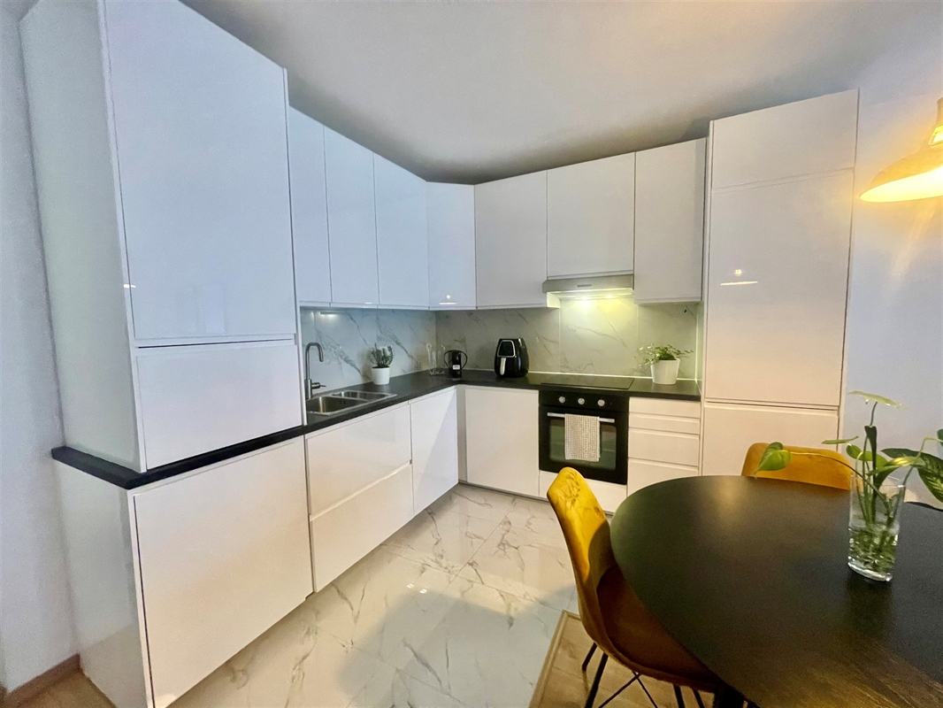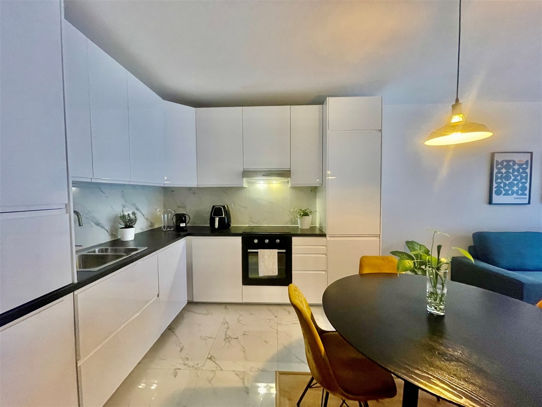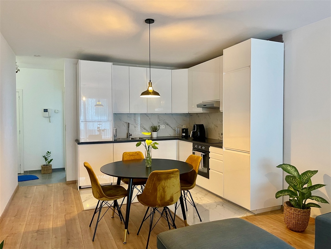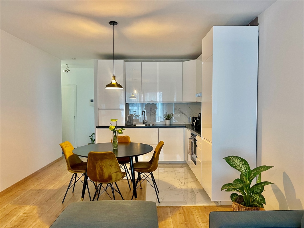 This renovated and furnished apartment, completed in 2009, is located within walking distance from Rue Neuve, the Rogier and Yser metro, Brussels-North train station, the Manhattan Center and the Grand Place of our European capital. This ready-to-use and bright apartment, located on the third floor, with a net living area of 52 m², includes an entrance hall, a pleasant living room with sitting and dining area, a fully equipped American kitchen (with a dishwasher and washing machine!), a bathroom (with a bathtub with a shower screen, a sink and a toilet), and one full-size master bedroom with a double bed, located on the quieter back side of the Pelican residence. Free from 1/12/2025! Common charges: 100€ per month. Individual meters for electricity & water. Additional pluses of this spacious apartment are the good connections to the small Brussels Ring, close to the E40 and E19 freeways. Contact Frederik by email at frederik@immo-time.be for more information or an initial site visit.