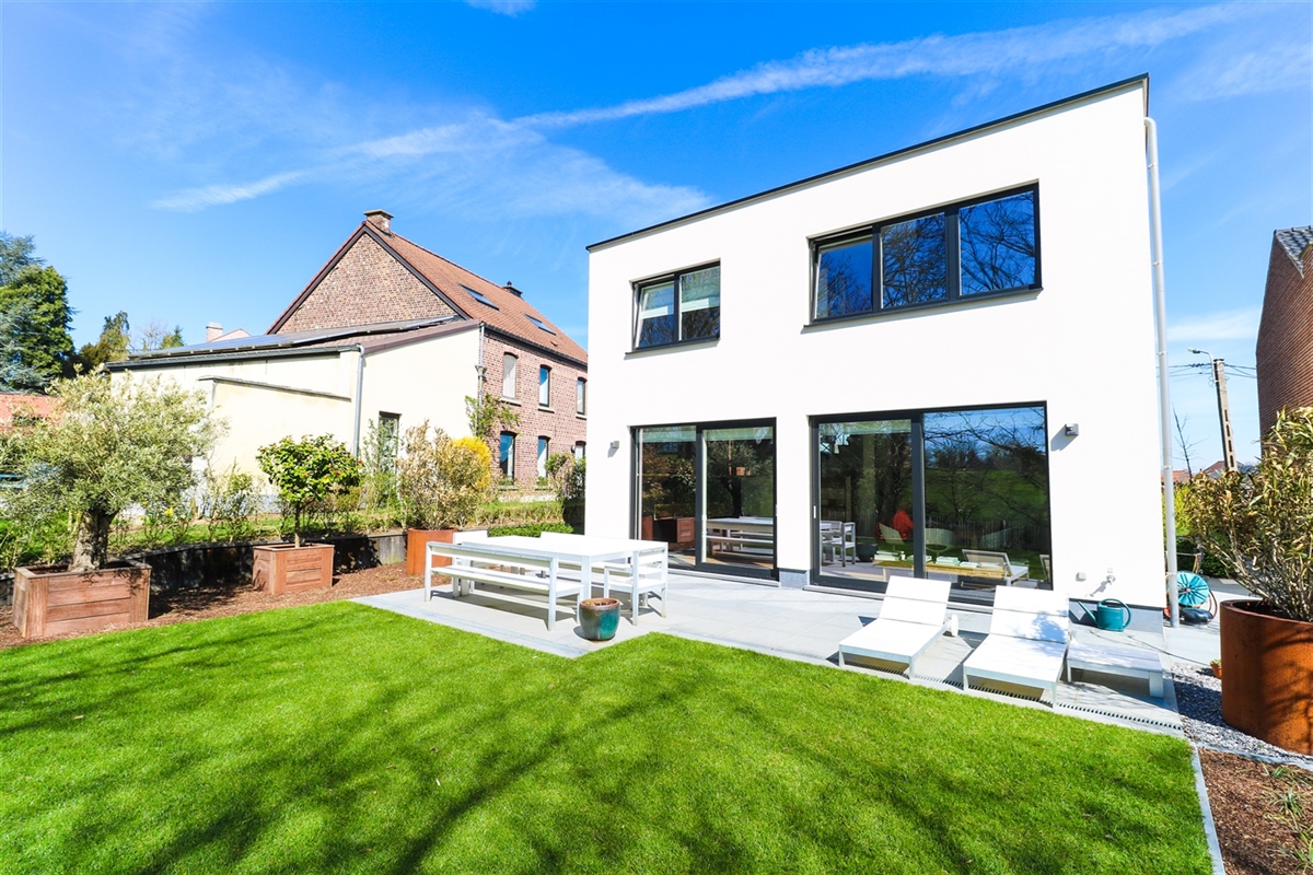 Deze perfect onderhouden en tijdloze villa is recent in 2017 gerealiseerd door de gerenommeerde bouwfirma Kwadraat en is uitermate rustig gelegen in een doodlopende straat in de mooie landelijke omgeving van Korbeek-Dijle, tussen Leuven en Brussel en vlakbij alle belangrijke invalswegen. Deze zeer energiezuinige villa omvat op straatniveau een inkomhal met vestiairekast en gastentoilet en een ruime inpandige garage. Op het tuinniveau bevindt zich de majestueuze en lichtrijke living met vide en met een volledig ingerichte open keuken met aansluitend een praktische bijkeuken of wasruimte. Op de eerste verdieping beschikt dit instapklaar eigendom over een ruime overloop, 3 volwaardige slaapkamers, een badkamer met ligbad en inloopdouche en een apart toilet. Een vaste trap brengt ons naar de tweede verdieping waar er een nachthal, een technische ruimte, alsook een tweede badkamer aanwezig is. Verder heeft deze zeer recente villa een groot zonovergoten terras uitkijkend op de mooie, onderhoudsvriendelijke en perfect georiënteerde tuin met een uniek uitzicht over het plateau van Duisburg. Bovendien werd de tuin dit jaar nog, volledig volgens de regels van de kunst, heraangelegd. Kortom, deze hoogwaardig afgewerkte villa in een rustige woonomgeving tussen Leuven en Brussel is zeker een bezoek waard. Voor snelle beslissers.