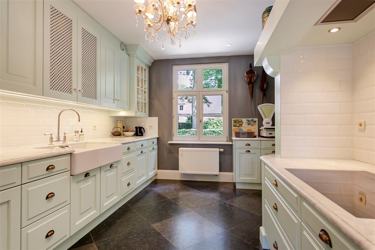 Keuken (Gelijkvloers)27.62 m2 ( met ontbijtgedeelte en ingericht met een vitro-keramische kookplaat, een dampkap, een porseleinen 2-delige spoelbak, een oven, een microgolfoven, een ingebouwd vaatwasmachine, een ingebouwde koelkast en een ingebouwde diepvriezer)