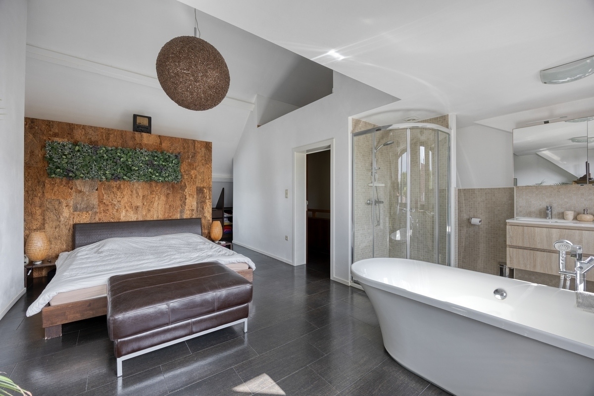 Bénéficiant d'une situation extrêmement centrale à Heverlee, à proximité du Gasthuisberg, de l'Imec et de toutes les principales voies de communication et à un jet de pierre du centre historique de Louvain, nous avons le plaisir de proposer à la vente cette maison d'architecte rénovée. Située sur un terrain de 3a 20ca, cette maison de beletage exclusive a été récemment rénovée dans les règles de l'art et dispose d'une surface utile de 247 m². Au rez-de-chaussée, vous trouverez un hall d'entrée, un débarras et un spacieux garage intérieur avec espace arrière pour les vélos et accès au jardin. Le premier étage se compose d'un palier, d'une toilette d'invités, d'une cuisine équipée et d'un salon spacieux et lumineux avec accès à la terrasse ensoleillée. Au deuxième étage, vous trouverez un palier, un bureau, deux chambres spacieuses et une première salle de bains. De plus, au troisième étage, vous trouverez la chambre principale avec sa salle de bains ouverte et son dressing. Cerise sur le gâteau, cette propriété unique dispose également d'un jardin paysagé et peu entretenu où il fait bon se détendre. En bref, une maison pleine de caractère et fortement recommandée pour ceux qui recherchent de l'espace, de l'efficacité énergétique et de la lumière dans un emplacement central près du centre de Louvain. Pour les décideurs rapides !