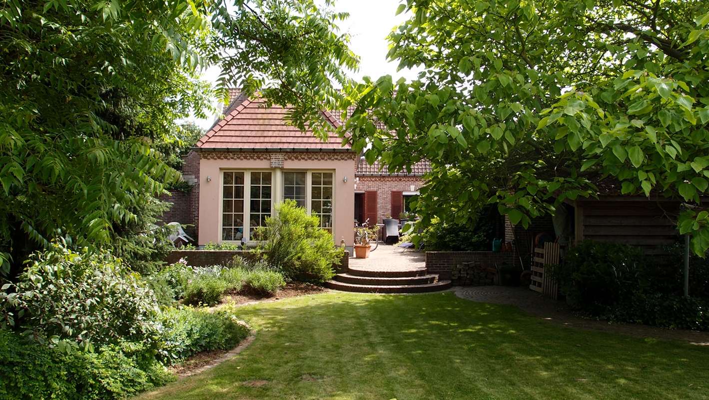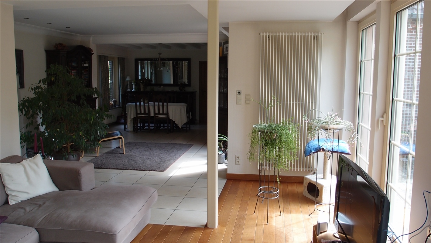 Deze verrassend ruime villa omvat op het gelijkvloers:een inkomhal, ingerichte leefkeuken, bijkeuken, riante woonkamer van maar liefst 53m², douchekamer, bureel of praktijkruimte, garage. Op de verdieping bevinden zich drie slaapkamers, een studieruimte en een badkamer. Verder zijn er drie kelders en een ruime bergzolder. Deze centraal gelegen villa heeft een prachtig aangelegde tuin met veel privacy. Tevens is er een losstaande, ruime garage met aansluitend een bergruimte. Deze prachtige villa is zeker uw bezoek waard.