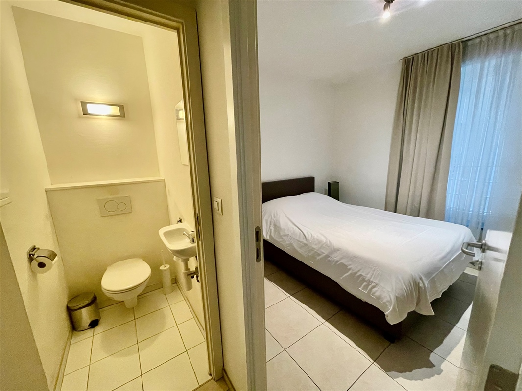 Cet appartement meublé se situe dans la résidence "Manhattan View", parfaitement entretenue et sécurisée, construite en 2011, bénéficiant d’une situation exceptionnelle à distance de marche de la Rue Neuve, de la station de métro Rogier, de la gare, du Manhattan Center et de la Grand-Place de Bruxelles. La résidence est équipée d’un système d’accès par badge garantissant confort et sécurité. Situé au premier étage, l’appartement offre une superficie habitable nette de 83 m². Il se compose d’un hall d’entrée, d’un lumineux séjour avec cuisine Américaine entièrement équipée, d’un hall de nuit, d’une première toilette, de deux chambres à coucher de 11 m² et 15 m², chacune disposant de sa propre salle de bains avec douche, second toilette et meuble lavabo, ainsi que d’un bureau pouvant être aménagé en troisième chambre à coucher. Le séjour et le bureau donnent accès à une terrasse orientée est de 5 m² offrant une agréable vue sur la vie animée du centre-ville. Parmi les atouts supplémentaires figurent l’excellente accessibilité via la Petite Ceinture ainsi que la proximité immédiate des autoroutes E40 et E19. Libre à l’acte! Possibilité d’acquérir un emplacement de parking intérieur. En résumé, un pied-à-terre idéal pour expats et citadins souhaitant vivre confortablement au cœur de Bruxelles. Contactez Frederik pour plus d’informations ou une première visite : +32 498 476 221 / frederik@immo-time.be