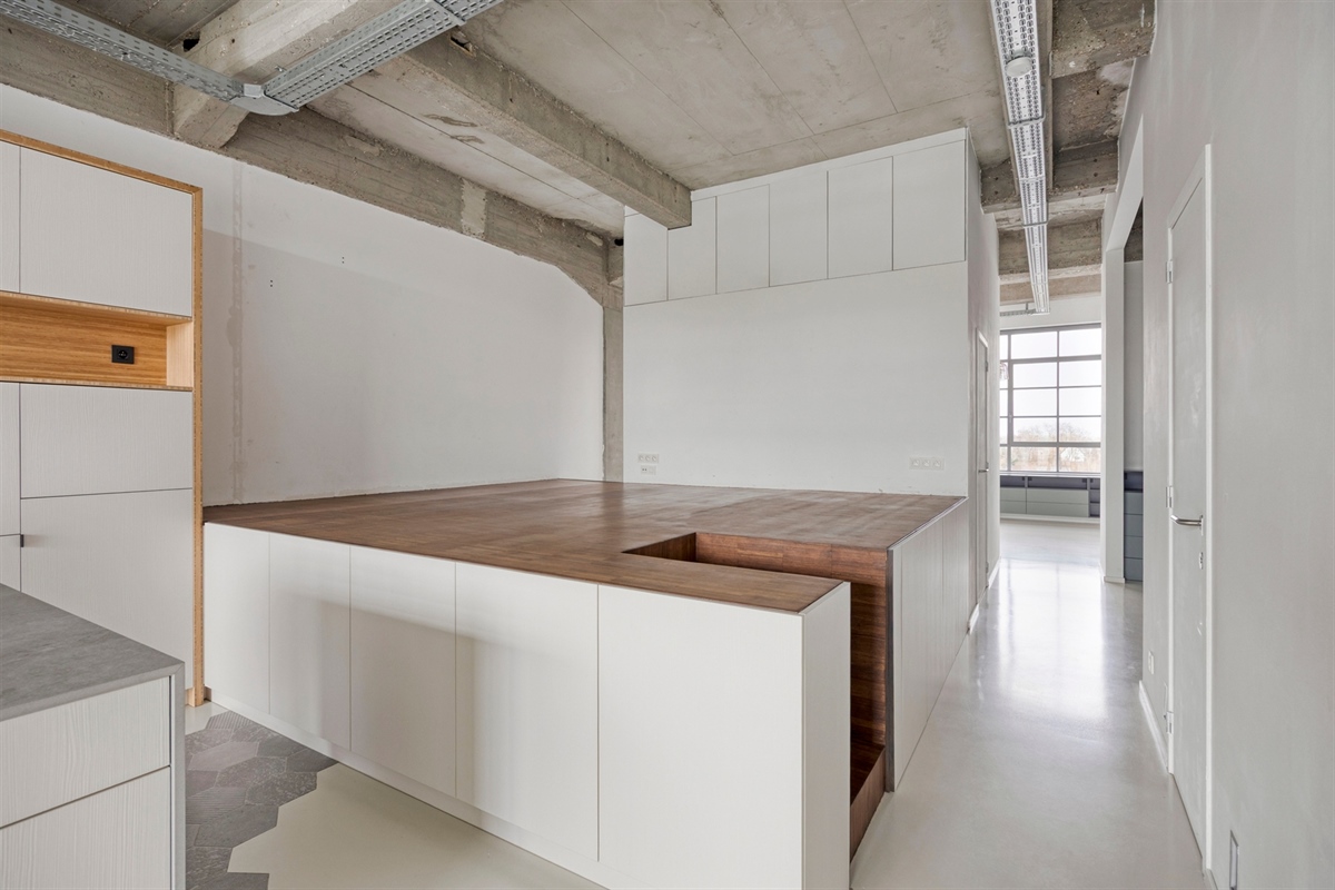 À deux pas de Louvain, près de la gare de Herent et avec un accès facile à toutes les routes principales, nous avons le plaisir de vous présenter ce loft unique et économe en énergie dans l'ancienne usine historique Henkel Persil. Cet appartement lumineux de pas moins de 106 m² est situé au deuxième étage et offre un espace de vie confortable avec une merveilleuse sensation d'ouverture. L'espace de vie s'intègre parfaitement dans une cuisine ouverte élégante et entièrement équipée, qui donne un accès direct à la terrasse parfaitement orientée, où il est agréable de s'attarder. L'appartement dispose également d'un espace de rangement pratique, d'une buanderie séparée, de toilettes pour les invités, d'une salle de bains joliment équipée et d'une chambre principale spacieuse. Un sous-sol individuel offre un confort supplémentaire, tandis qu'un emplacement couvert avec des installations de recharge peut être acheté au prix de 30 000 €. Combinant le charme industriel d'origine avec le luxe moderne et l'efficacité énergétique, ce loft mérite absolument votre visite. Une opportunité exceptionnelle pour ceux qui recherchent du style, de l'espace et du caractère. Ne tardez pas !