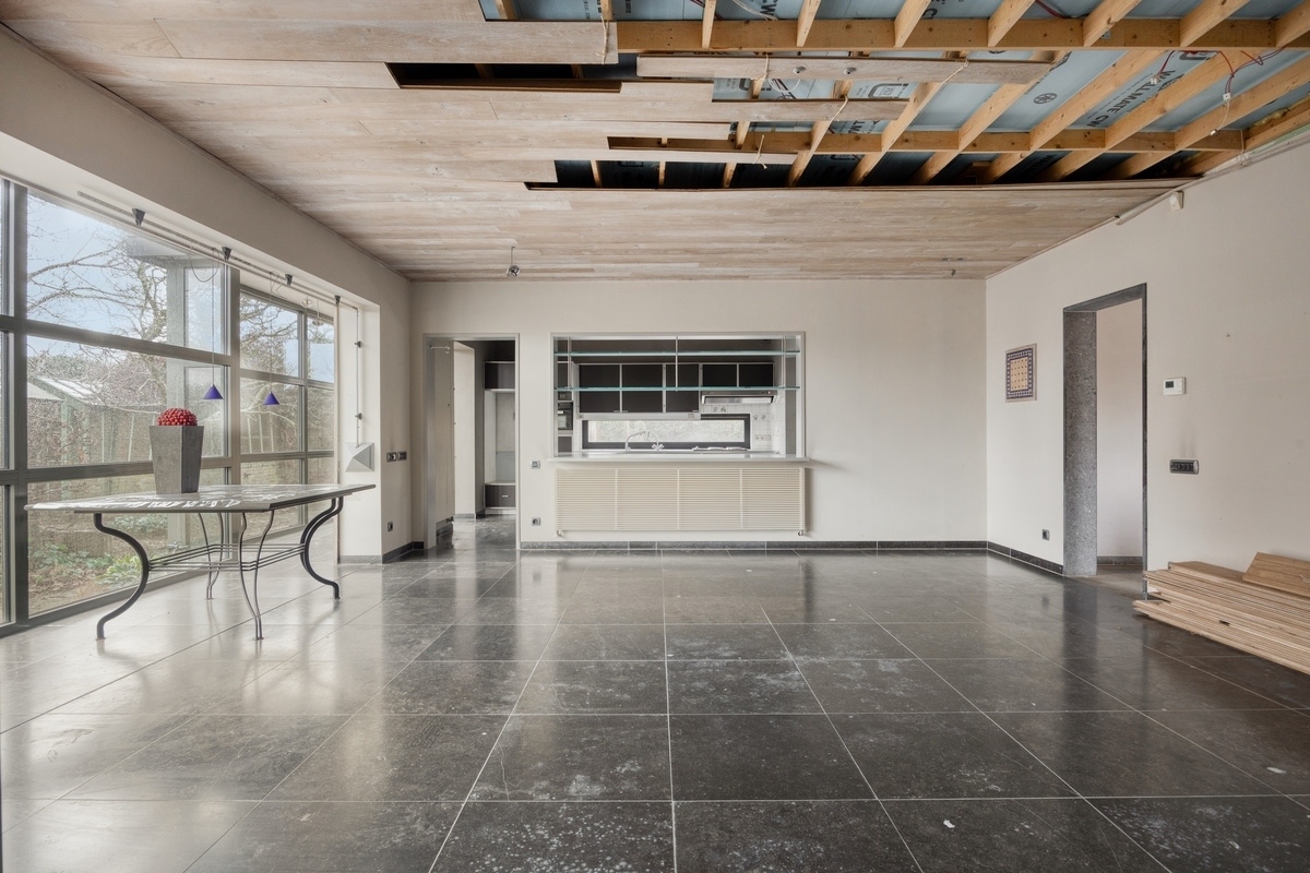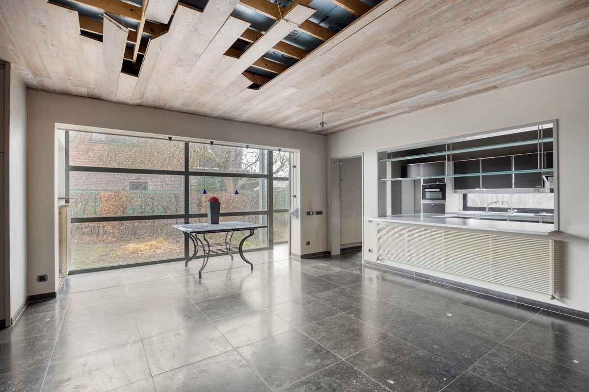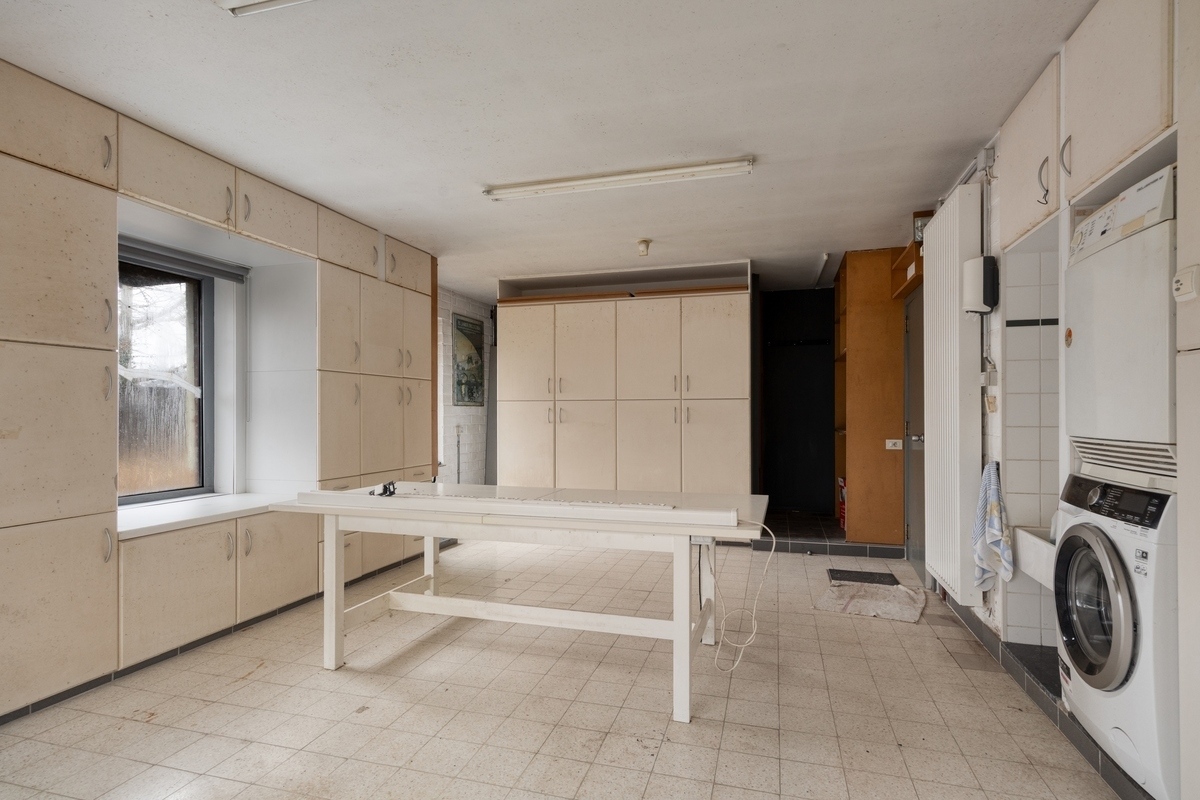 Dans une rue particulièrement calme et sans voiture de la campagne de Herent, à deux pas de Louvain et à proximité de toutes les grandes voies de communication, nous avons le plaisir de vous proposer à la vente cette solide maison de plain-pied indépendante avec un beau jardin. Cette propriété architecturale, construite en 1975, est située sur un beau terrain de 11a 60ca et a une surface habitable utile de 170 m². Le hall d'entrée spacieux avec vestiaire est situé au centre de la propriété. L'aile gauche de cette maison à rénover comprend le séjour de pas moins de 47 m² avec cuisine ouverte et une pièce de rangement pratique adjacente. L'aile droite comprend une salle de bains avec une belle baignoire avec vue sur le jardin idyllique, deux chambres spacieuses et une salle polyvalente. Au sous-sol, on trouve également une cave fonctionnelle et un abri de voiture pratique à côté de la maison. Un atout non négligeable est le beau jardin avec de charmantes vérandas qui vous donnent un sentiment de vacances dans votre propre pays. Avec quelques travaux de rénovation, vous pouvez faire de cette maison une habitation confortable dans un quartier résidentiel calme et verdoyant près du centre de Louvain. Planifiez votre visite rapidement et laissez-vous surprendre par tout ce que cette propriété a à offrir ! Hautement recommandé.