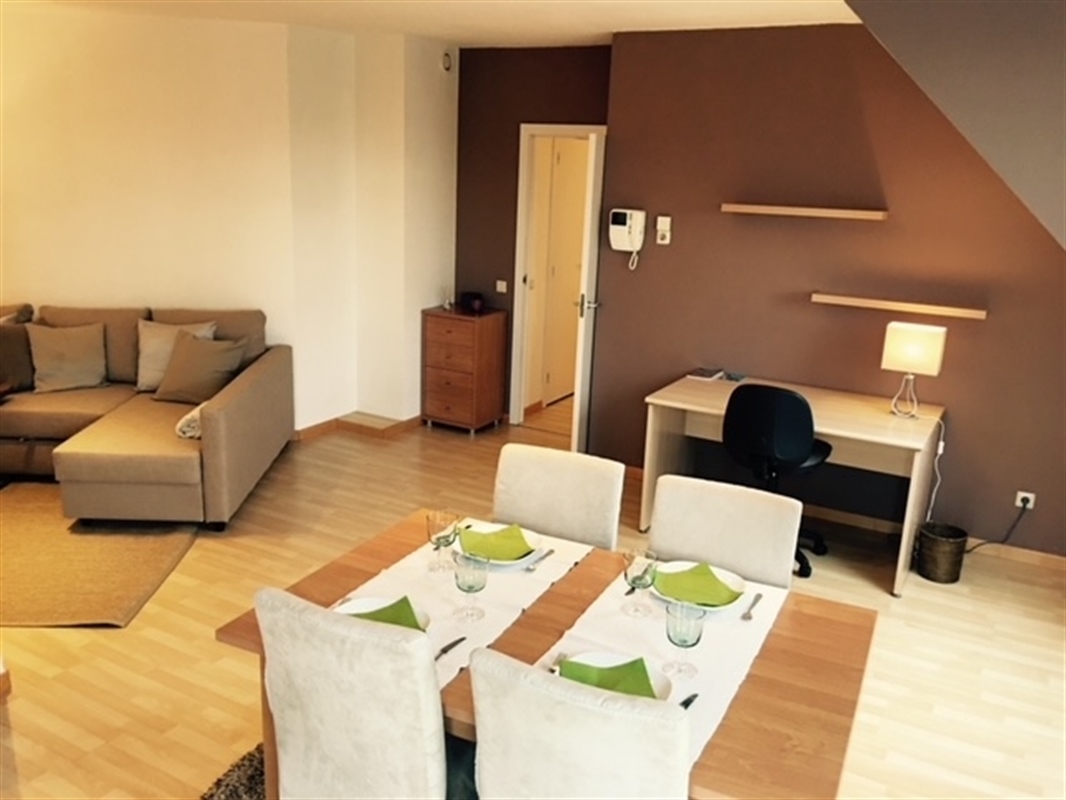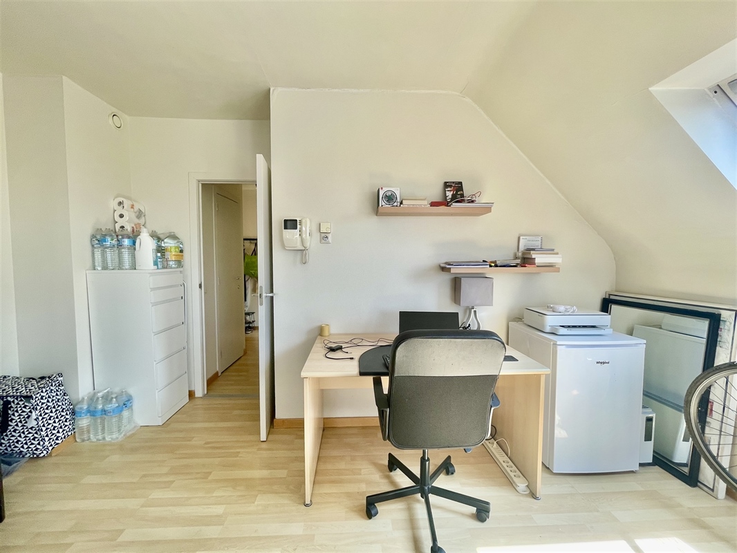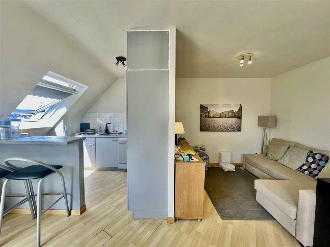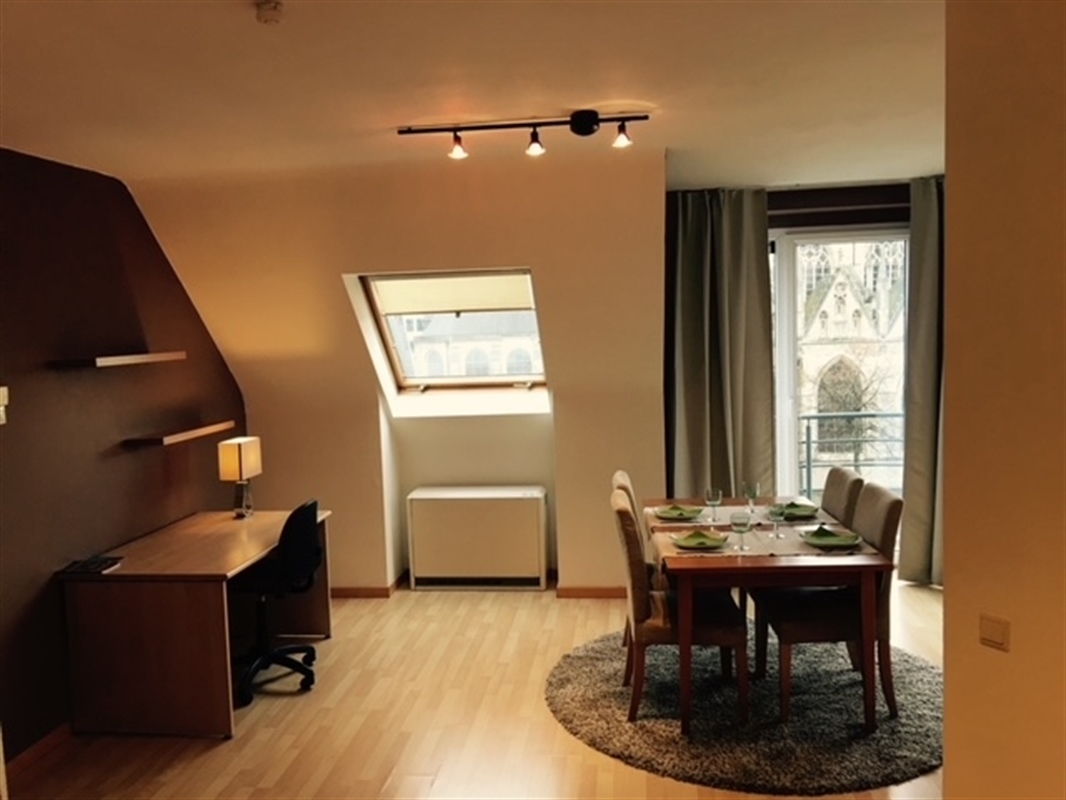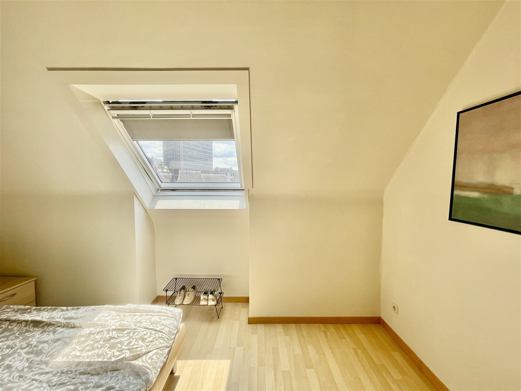 Situé au cinquième et dernier étage de la résidence Sablon, un immeuble de caractère parfaitement entretenu, à l’angle du prestigieux Boulevard del'Empéreur 27 et la Rue d'Accolay 38, dans le quartier chic du Sablon, en plein cœur de Bruxelles, à deux pas de la Gare Centrale et de la Grand-Place, se trouve ce penthouse exclusif et meublé, avec une superficie habitable nette de 66,00 m² avec une terrasse privative! Ce bien lumineux est unique en son genre et bénéficie d’une vue panoramique imprenable à 270° sur la skyline Bruxelloise. Il se compose d’un hall d’entrée avec une toilette, d’un séjour avec une salle à manger, d’une cuisine ouverte sur mesure entièrement équipée, de deux chambres confortables et d’une salle de bains avec une baignoire et un meuble lavabo. Le séjour donne accès à la terrasse orientée plein sud, garantissant une intimité maximale! Les charges communes s’élèvent à environ 150€ par mois et les parties communes ont récemment été rénovées et payées. Une opportunité rare pour un investissement sécurisé, une première acquisition ou un pied-à-terre en centre-ville. Contactez Frederik sans engagement pour plus d’informations ou une visite: frederik@immo-time.be