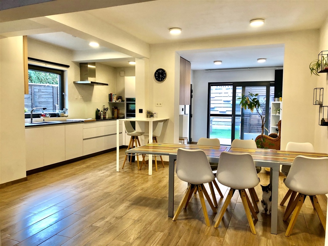 Cette maison récemment rénovée (2018), partiellement meublée et énergétique, est située à proximité du centre de Louvain, des transports en commun et des accès aux autoroutes E40/E314. Cette maison trois façades, avec une surface habitable nette de 141 m², est aménagée au rez-de-chaussée avec un hall d'entrée et une toilette, un living et une salle à manger, une cuisine Américaine entièrement équipée (des appareils NEFF), le salon donne accès au jardin privatif aménagé (gazon synthétique) et à une agréable terrasse avec abris de jardin. Le premier étage se compose d'un palier, d'une salle de bains avec douche et une deuxième toilette, ainsi que deux chambres à coucher spacieuses. Au deuxième étage se trouve une troisième grande chambre à coucher/bureau. Au niveau de la rue, il y a une pièce technique et un garage intégré (avec une place de stationnement extérieure supplémentaire devant le garage). Compteurs individuels pour l'eau, le gaz et l'électricité. Disponible à partir du 15/12/2025! Points forts supplémentaires : domotica présent et une citerne d'eau de pluie alimentant les deux toilettes et la machine à laver. Pas d'étudiants. N'hésitez pas à contacter Frederik pour les conditions de location ou une première visite: frederik@immo-time.be.