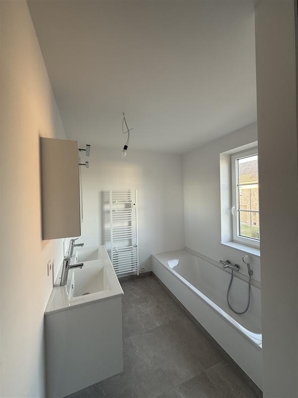 Op een zucht van de pittoreske dorpskern van Erps-Kwerps, vlakbij het rustgevende Silsombos, gelegen in een verkeersluwe doodlopende straat, nabij het treinstation van Kortenberg en alle belangrijke invalswegen, zijn wij verheugd, dit nieuwbouwproject in het Hof van Daniël Godts te koop aan te bieden. Deze uiterst energiezuinige nieuwbouwwoning, gerealiseerd door een gerenommeerde bouwfirma, volledig opgeleverd conform de regels van de kunst en opgericht met uitstuitend kwalitatieve en duurzame materialen heeft een nuttige bewoonbare oppervlakte van 190 m² en een zonovergoten terras van 21 m². Deze nieuwbouwwoning gelegen op een perceel van 263 m² en met een gevelbreedte van ruim 7 m, in een moderne en tijdloze bouwstijl is hoogwaardig afgewerkt en is voorzien van alle modern bewoningscomfort, zijnde overal vloerverwarming, luchtwater warmtepomp, 12 zonnepanelen en regenwaterrecuperatie, wat bijdraagt aan een energiezuinig en milieuvriendelijk leven. Buiten is er ook een praktische parkeerplaats voorzien. De toekomstige bewoners kunnen tevens, onder bepaalde voorwaarden, genieten van het gunstig verlaagd BTW-tarief van 6 %. Kortom, een ware opportuniteit voor mensen die energiezuinig, ruim, tijdloos en luxueus wensen te wonen in een kindvriendelijke en groene omgeving op een unieke ligging. Zeker uw bezoek waard. Voor snelle beslissers.