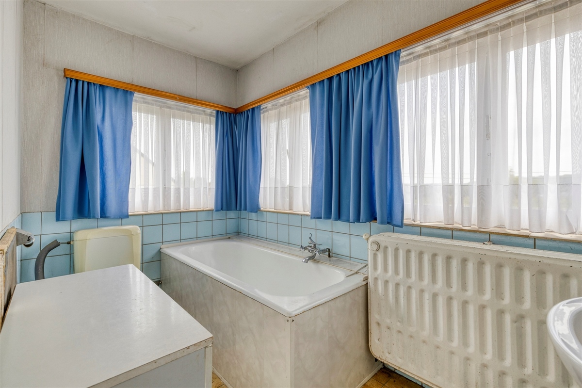Badkamer 2 (Eerste verdieping)4.89 m2 (Uitgerust met een bad, een toilet en een ééndelige lavabomeubel.)