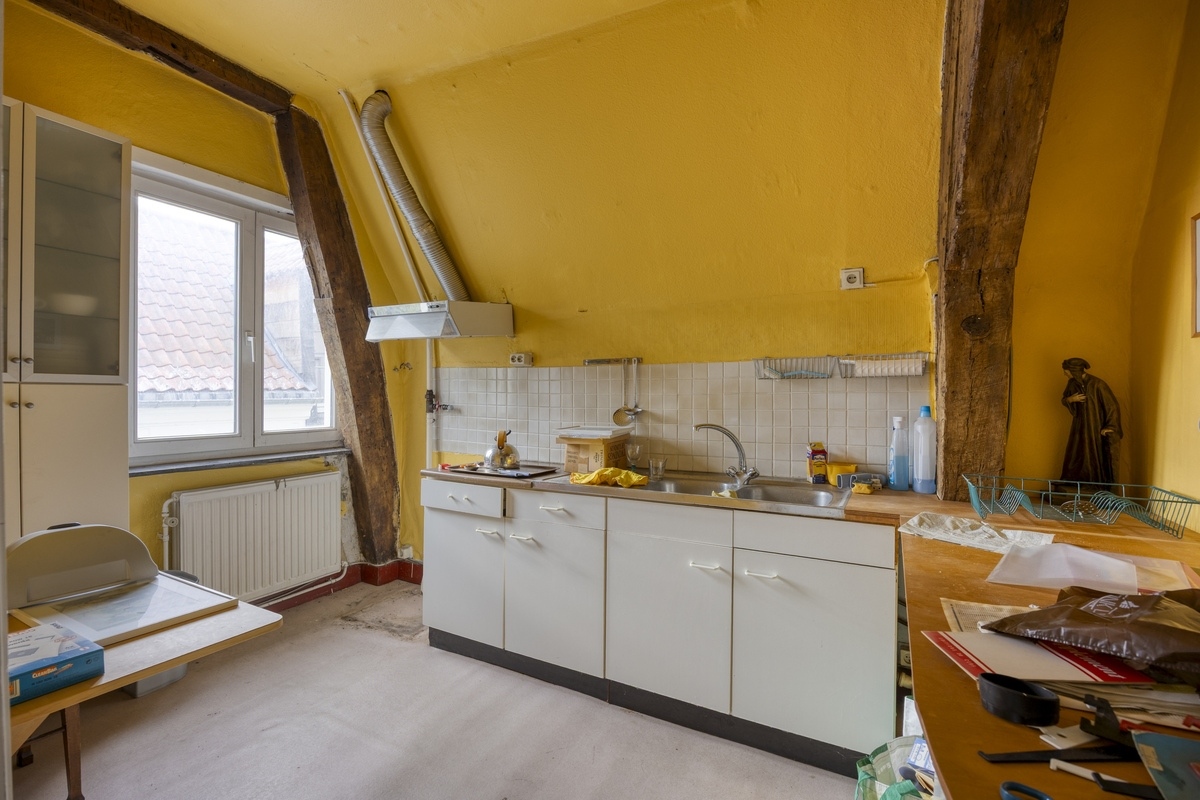 Wij zijn vereerd deze laatgotische herenwoning, gelegen in een van de oudste en gezelligste straatje van het historisch centrum van Leuven, te koop aan te bieden. Dit karaktervol eigendom, daterend uit de 16de eeuw, bestaat uit 2 vergunde entiteiten. Gelegen op een mooi perceel van 239 m² en met een nuttige bewoonbare oppervlakte van maar liefst 339 m², omvat dit historisch pand op het gelijkvloers een royale inkomhal met traphal, een polyvalente ruimte, ideaal te benutten als bureau, een gastentoilet, een lichtrijke living met eetplaats en een keuken. Vanuit de living is er tevens een binnentrap die leidt tot een slaapkamer met en suite badkamer. Verder beschikt de eerste verdieping over een appartement voorzien van een inkomhal, living met open ingerichte keuken en een douchekamer. De slaapkamer van dit appartement bevindt zich op de tweede verdieping, net zoals het gastenverblijf uitgerust met een hal, badkamer, slaapkamer, living en keuken. Op de derde verdieping, onder het prachtige dakgebinte, vindt u een ruime polyvalente ruimte. Bovendien kan u genieten van een onderhoudsvriendelijke stadstuin met vergunde bijgebouwen en beschikt dit eigendom nog over een gewelfde wijnkelder. Dit historische pand, bestaande uit 2 vergunde entiteiten, dient opgefrist te worden en biedt op die manier de kans om uw eigen stempel op de woning te drukken. Een ware opportuniteit voor wie zoekt naar ruimte in een historisch kader met een rijke geschiedenis. Voor snelle beslissers!