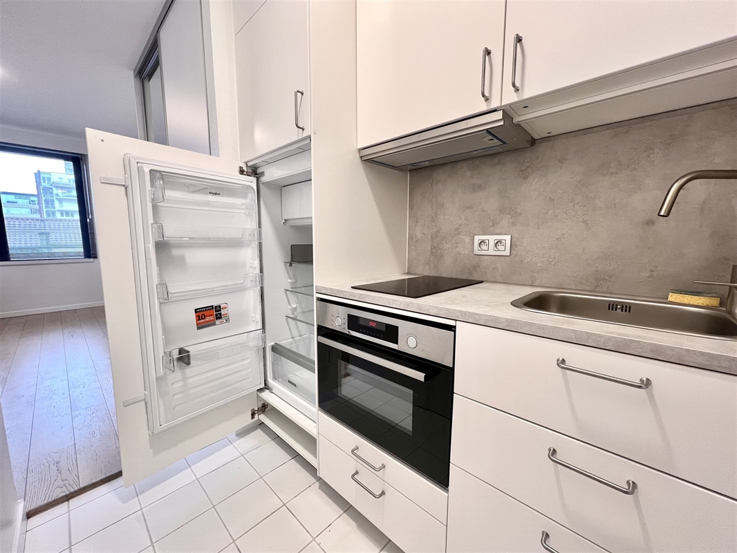OPEN DEUR DINSDAG 17 MAART! Deze cosy en gemeubelde studio is vrij te bezoeken op dinsdag 17 maart tussen 18u30 en 19u30. U bent van harte welkom! Gelegen op wandelafstand van het station en het historisch centrum van Leuven, stellen wij deze energiezuinige en gemeubelde studio te huur. Deze lichtrijke studio op de derde verdieping van een welonderhouden residentie, genaamd “De Nervier”, met als bouwjaar 1993, werd recent volledig gerenoveerd volgens de regels van de kunst, heeft een netto-bewoonbare oppervlakte van 24m² en beschikt over een ingerichte kitchenette met inductiekookplaat, dampkap, spoelbak, inbouw combioven en inbouw koelkast met vriesvak, een leeft- en slaapruimte met mooie parket vloer en een inbouwkast, inclusief was- en droogmachine, en een aparte badkamer met lavabo, douche en toilet. Tevens is er nog een ondergrondse gemeenschappelijke fietsenstalling alsook een vuilnislokaal aanwezig. Kortom, deze cosy en gemeubelde studio is zeker uw bezoek waard en is beschikbaar vanaf 1 april 2026. De maandelijkse lasten bedragen 100 euro (inclusief water).
